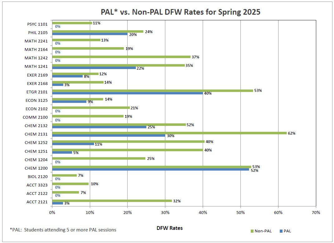 DFW rates represent the percentage of students who made a D, F, or withdrew from the selected course. Measure is only for students attending 5 or more PAL sessions.