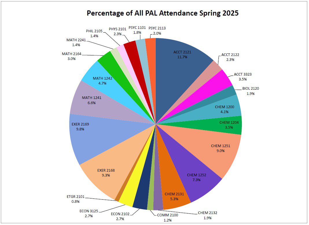 Percentage of sample, based on course, for a total PAL attendance